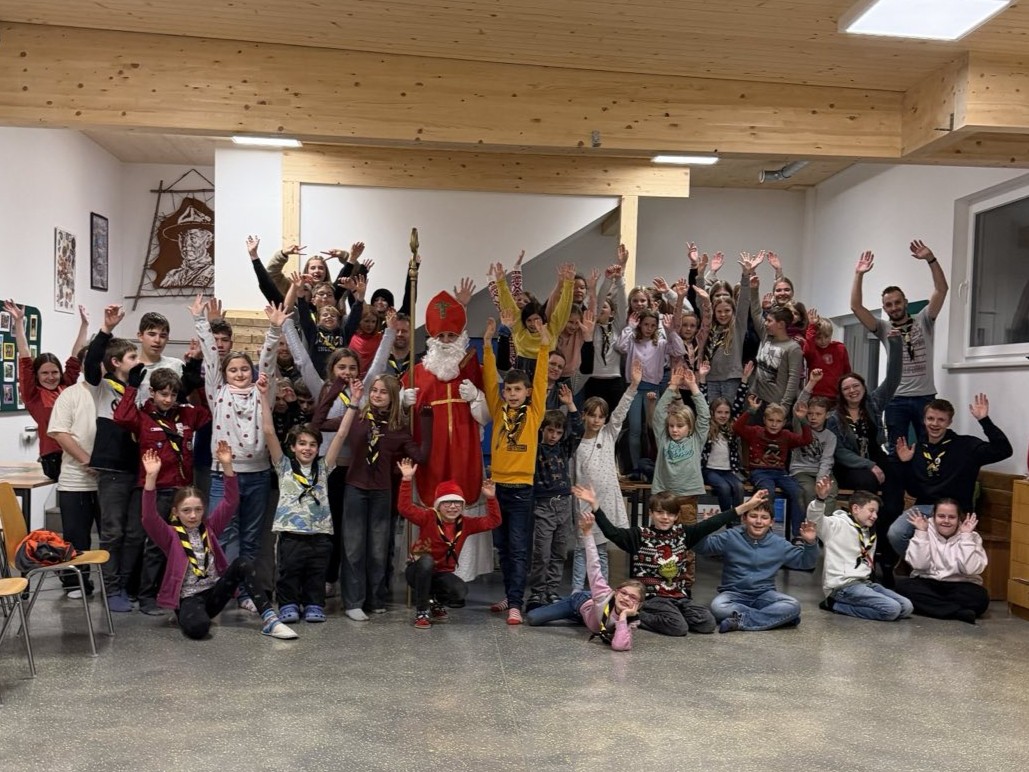 Nachdem die Pfadis sich bereits auf der Wiese mit Spielen ausgetobt hatten, haben sie sich erwartungsvoll im Saal der Wiesnburg versammelt. Es wurde dann ganz still, als der Hlg. Nikolaus den Saal betrat. Er bat dann, dass sich die einzelnen Gruppen sammeln und zuerst kamen die Wichtel und Wölflinge zum Nikolaus. Er fragte nach dem Programm, wie es mit den Erprobungen läuft und spornte die Kinder an, eifrig weiterzumachen. Ein Wichtel und ein Wölfling durfte dann die Nikolaussackerln zur Verteilung übernehmen. Anschließen kamen die Guides und Späher wie auch die Caravelles und Explorer an die Reihe. Nachdem es keine schlimmen Pfadis gab, brauchte auch kein Krampus in die Runde kommen, jedoch ermunterte der Nikolaus manchmal die Pfadis zu mehr Eifer!